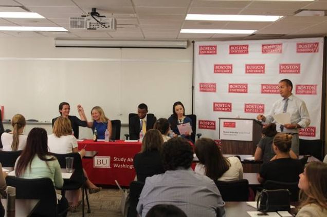 Boston University’s Washington DC Program encourages students to connect with alumni, often hosting networking events between current students and BU grads. (Credit: BUDC)