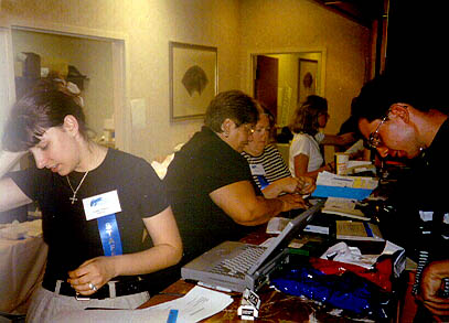 Registration is the most visible of the many adminstrative tasks largely taken for granted during any large event such as the Twentieth World Congress. Thanks and appreciation are thus owed to Georgia Maheras (pictured in front, in black), Linda Smallbrook and the APA registration staff, and our volunteers. |