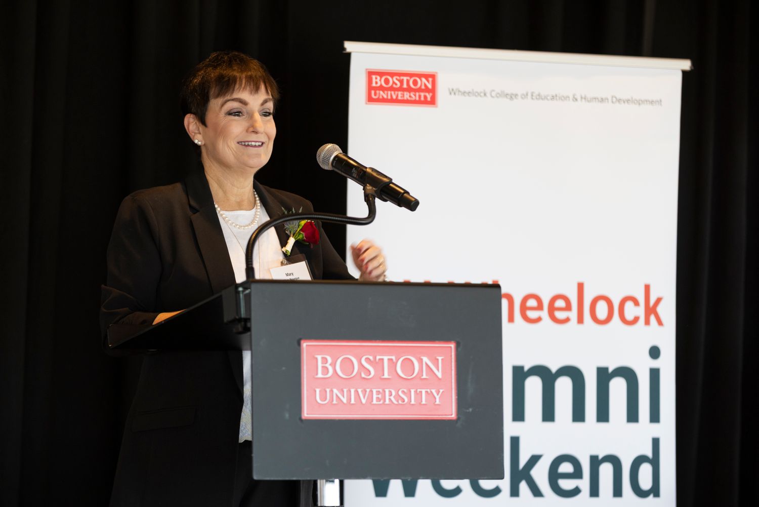Each year, Boston University Wheelock College of Education & Human Development recognizes members of our alumni community for their outstanding contributions, exemplary service, and dedicated leadership. The 2025 Alumni Awards recognized five alumni whose commitment and advocacy have had far-reaching impact in Boston, the nation, and beyond. Awards were presented to Mary Bourque, Ashley Sharpe-Porter, Raul Fernandez, Deborah Buehler, and Christine Benero.