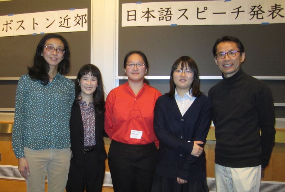 Boston University students Jiaxing Yan and Cao Mai presented wonderful speeches at Boston Area Japanese language Speech Event at Boston College on Saturday Nov. 14 2-5pm. Their speeches were very well received by the professors from eight universities in Boston area.