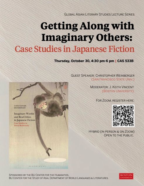 The event is co-sponsored by the BU Center for the Humanities, BU Center for the Study of Asia, and BU Department of World Languages & Literatures.