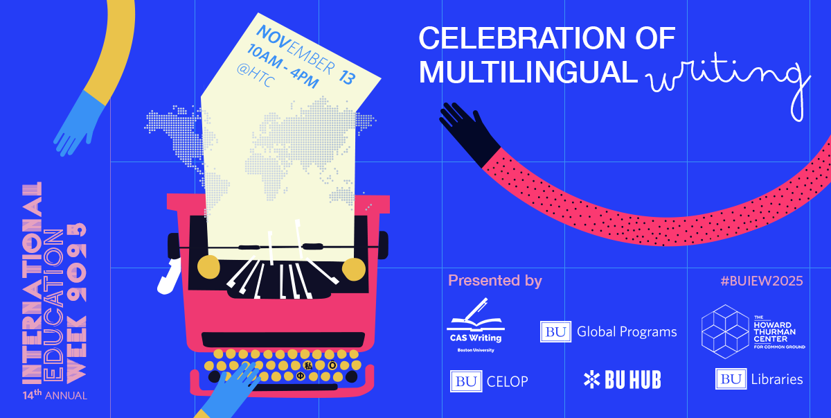 The Celebration of Multilingual Writing (held this year on Thursday, November 13, from 10-4 in the Howard Thurman Center) is a vibrant interactive celebration of the rich diversity of languages and cultures that make up BU. Whether you’re a heritage language speaker, foreign language majors or minor, international student, faculty/staff with an interest in arts and creativity and culture, we extend a warm invitation to you.
